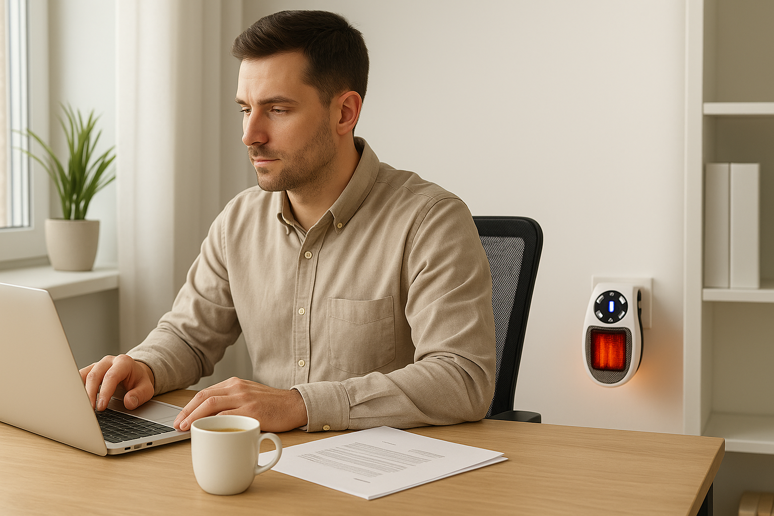 <<Jeg bruker EcoHeat på hjemmekontoret, og den har vært en livredder! Rommet blir varmt på under ett minutt, og jeg har merket lavere strømforbruk allerede. Enkel å bruke og veldig stillegående.>>